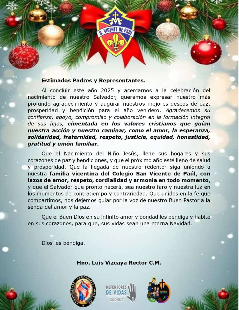 Mensaje Navidad de Nuestro Rector de Plataforma Virtual Colegio San Vicente de Paúl - martes, 16 diciembre 2025, 9:38 PM Número de respuestas: 0 Enlace permanente